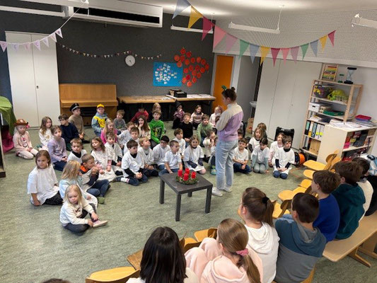 Diesmal haben die Klassen 1 und 2 uns mit einem tollen Schneeflockentanz und einem Gedicht verzaubert.